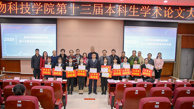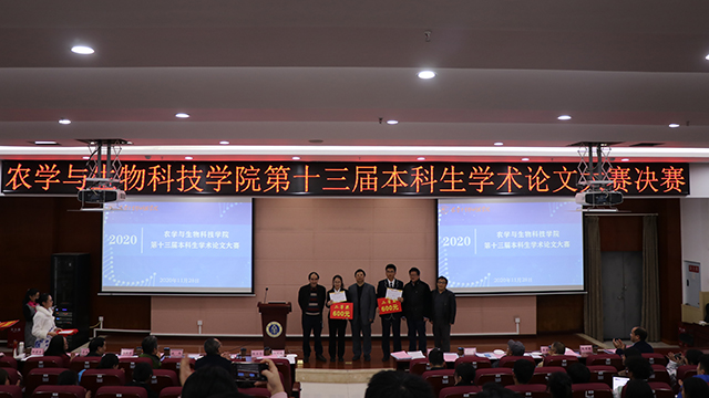 经过各位专家现场打分和前期书面评审分数,决赛最终评出优秀奖四名(奖金200元),三等奖三名(奖金400元),二等奖两名(奖金600元),一等奖一名(1000元),最佳展演奖一名(200元)。2018级区域二班杨芸菲、2018级农学五班兰雪渝、2018级农学五班郭青青、2018级区域一班李欣玥荣获优秀奖;2019级农学四班熊子娴作品《水稻雄性不育突变体ms10的表型分析和精细定位》、2018级农学五班胡舒婷作品《超量表达StNAC072促进马铃薯块茎形成》、2017级区域一班李林蔚作品《重庆市北碚区农田生态系统服务功能评价》荣获三等奖;2017级神农班晁好瑜作品《BrassicaEDB:A gene expression database for Brassica crops》、2018级农学五班孙佳婕作品《水稻籽粒灌浆调控基因GFD2的图位克隆》荣获二等奖;2018级农学五班段倩楠作品《LF1调控水稻侧生器官极性发育的分子机制研究》荣获一等奖并荣获最佳展演奖;。
