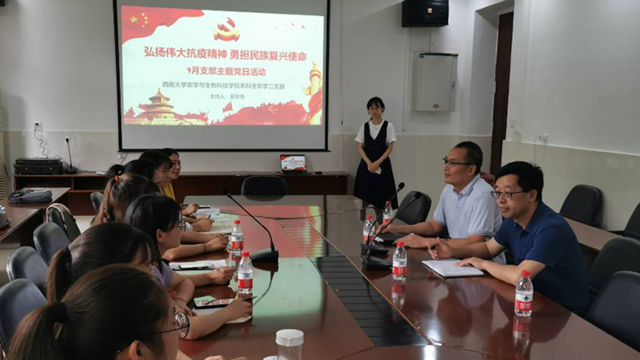 党支部成员一起学习了《习近平在全国抗击新冠肺炎疫情表彰大会上的讲话》和钟南山、张伯礼、张定宇、陈薇等国家勋章和国家荣誉称号获得者的先进事迹,并围绕“矢志拼搏奋斗,勇担时代使命”主题展开了积极的讨论。支部成员结合我国的抗疫斗争经历,从责任担当、命运与共、价值实现、危机与机遇等方面谈论了对伟大抗疫精神的认识,并结合自身表明了农科学子在百年未有之大变局的新时代前进方向。