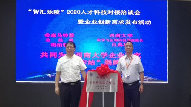院长吕典秋与山东乐陵希森马铃薯产业集团有限公司总经理胡柏耿为基地揭牌。参加揭牌仪式的有乐陵市委常委、副市长赵之达,乐陵市委常委、组织部长张因忠等领导及企业代表。仪式由乐陵市科技局局长刘艳霞主持。