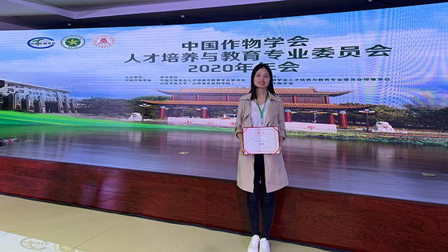 10月17日下午,会议同期举行了“全国作物学科博士生论坛”、“全国农科学子联合实践行动研讨会”、“教学与课程思政交流论坛”。山西农业大学党委书记张强表示本次论坛有利于展示作物学科不同领域的最新成果和动态,也有利于博士生在交流中拓展知识广度、汲取先进理念、得到启发帮助、提高研究水平,对作物学科的人才培养和研究生教育具有极其重要的意义。论坛分为栽培耕作和遗传育种两个分会场,来自17所高校的25位优秀博士生作了精彩报告。韩H漫博士研究生曾晓琴以《水稻MYB转录因子MFS2调控小穗分生组织命运及花器官的特征发育》为题在论坛上作报告,并荣获二等奖。