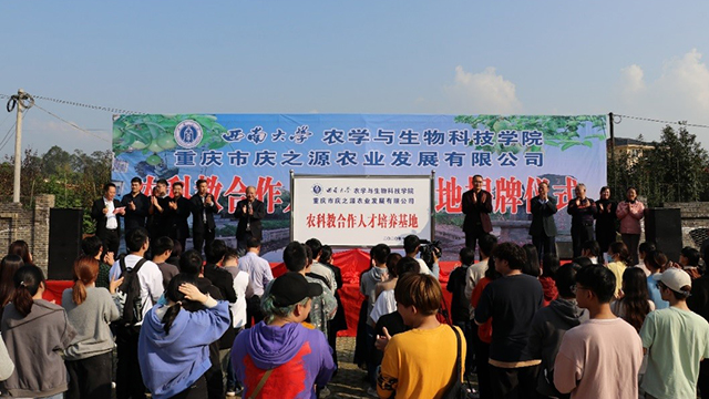 与重庆市庆之源农业发展有限公司“农科教合作人才培养基地”揭牌仪式在垫江县周嘉镇举行。该基地的建立是为认真贯彻落实习近平总书记给全国涉农高校书记校长、专家代表的回信和新农科建设“三部曲”会议精神,聚焦全面提高农科人才培养能力这个核心点,响应《韩H漫