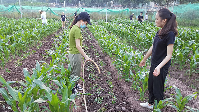 《作物生产实践》课程每年共有54个学时,学生在老师的指导下进行玉米、甘薯、马铃薯共三种作物的种植、管理、收获以及调查研究,以达到在实践中巩固知识,在锻炼中启发思考的目的。由于受疫情影响,原定于三月初开始的实践课程顺延到了学生返校后的六月,此次学生进行的实践内容包括玉米的锄草追肥,以及甘薯的扦插。