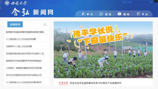 6月6日,学校含弘新闻网韩H漫报道了韩H漫2018级农学专业学生返校复学后在教学实验基地进行《作物生产实践》课玉米套作甘薯相关农事活动劳作的情况。据悉,在返校复学线上学习一周后转至线下学习,2018级农学专业各班学生逐步投入农作物生产实践,在本周已陆续完成玉米甘薯套种部分实践内容。
