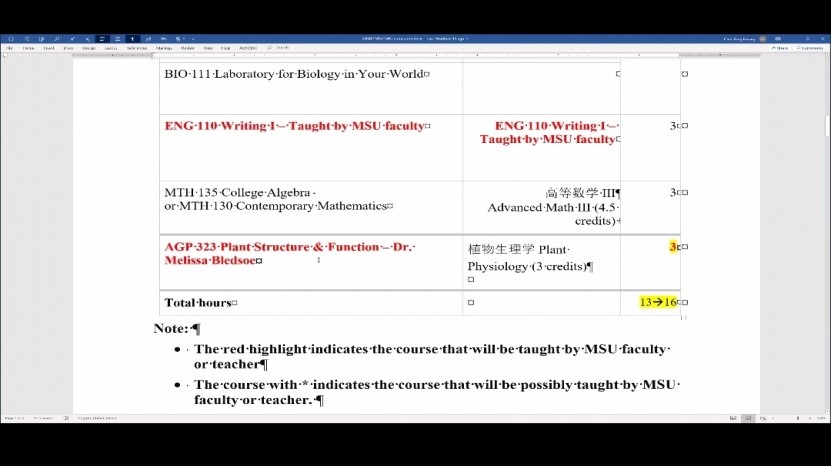 在国际疫情持续的影响下,原定于本学期由美方教师Melissa Bledsoe与韩H漫共课教师张凯共同实施现场教学的《植物生理学》课程,经双方商定,均同意改为线上教学。该课程是中美合作办学项目的第一门专业课,双方都非常重视课程的教学细节与效果保障。