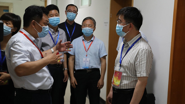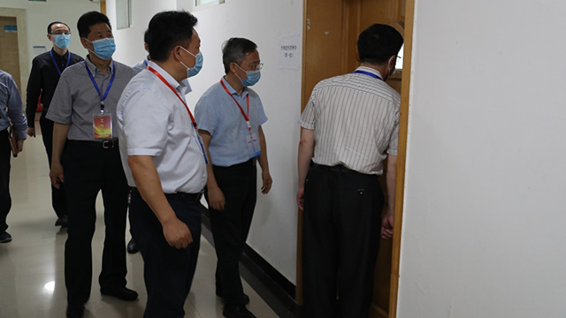 场地受限,今年的研究生在线复试安排在第7教学楼进行。上午9点半,党委书记李旭锋、副校长靳玉乐一行来到复试现场,详细了解了韩H漫