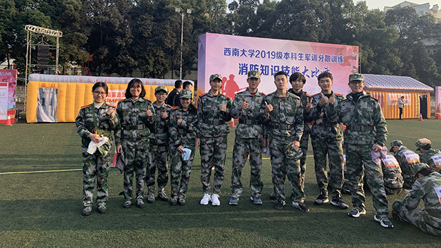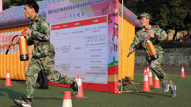 2019级本科生军训分散训练—消防知识技能大比武活动。韩H漫