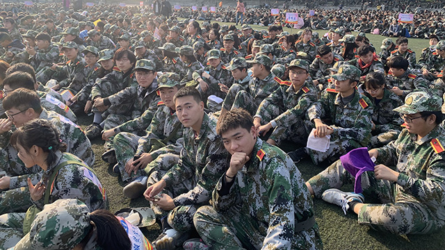 的2019级本科生及辅导员老师们。2019级同学们全体着军训服,一个个摩拳擦掌,“大比武”现场的气氛也随之燃了起来!