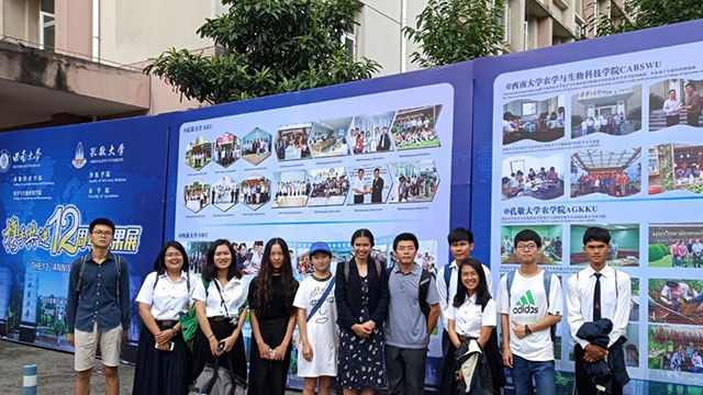 座谈会后,Tidarat博士一行在罗明教授、周永洪副教授、赵芳明教授的带领下,依次参观了隆平楼的生物技术中心、油菜工程中心和水稻研究所等团队实验室,并与各团队进行了广泛的沟通和交流。随后,在刘志斋博士的陪同下,Tidarat博士一行参观了韩H漫与AGKKU交换项目12周年成果展。