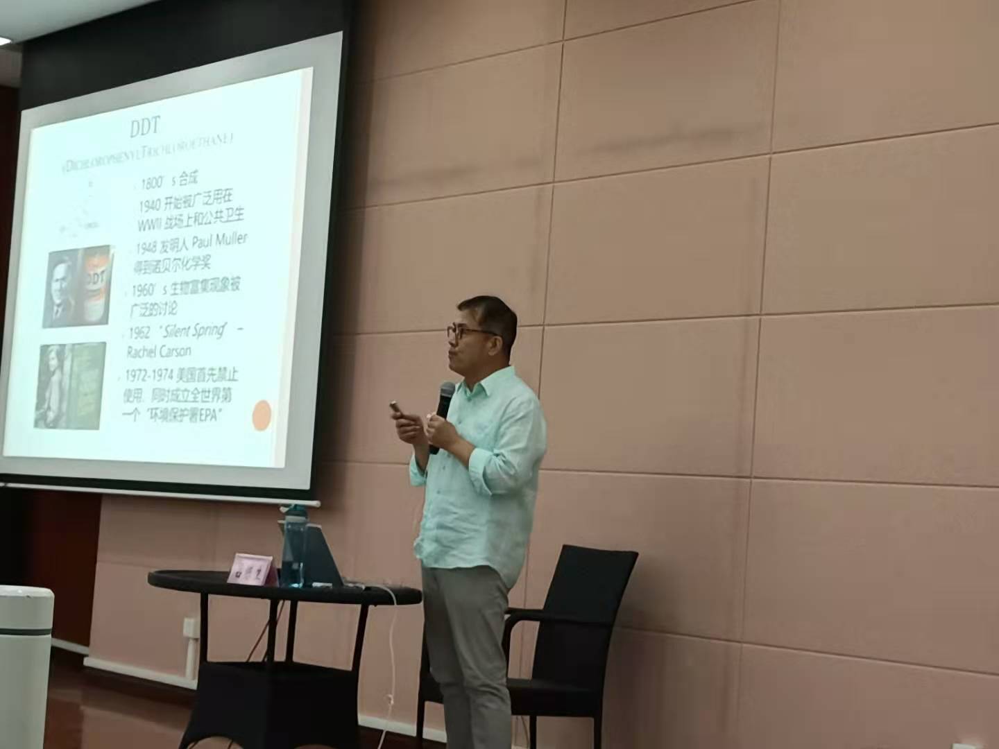 吕陈生教授所作的《再访农药对生态环境与人群健康的风险》专题报告,向参会的生态农友和师生介绍世界农药发展历史,用翔实的实验和数据呼吁人们关注农药的危害,减少农药使用。吕教授阐明三点事实:被告知的毒性和作用机制,都不是农药最后被禁止使用的原因;农药被禁用的原因都是农药公司没有揭露的毒性;真正对生态环境和人群健康的威胁,来自于长时间低剂量的使用(暴露)所产生的毒性。