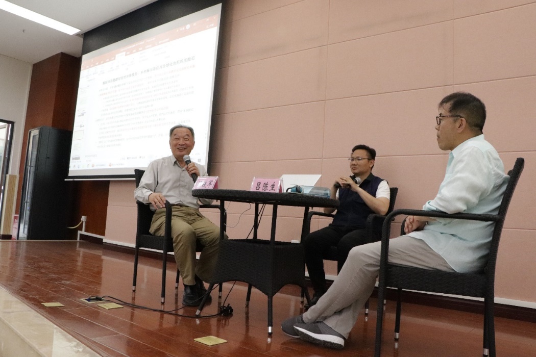 农科人才培养情况,要求青年学子,尤其是新农科学子要肩负起农业现代化的伟大使命,在面对这样一个复杂变局、国家战略转型之际要多一些深层次思考。现场一位同学表示从温铁军教授的报告和著作中学习到了思考中国农业出路不一样的方式,温教授感到欣慰,并激励广大学子多阅读、多实践,做中国生态农业的接班人。