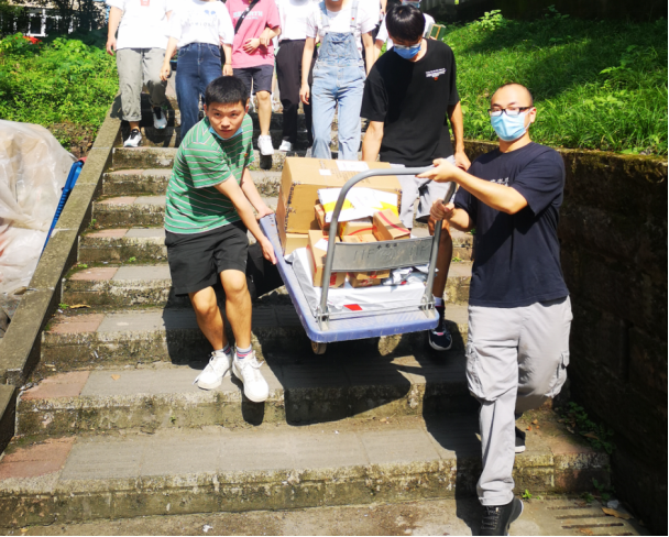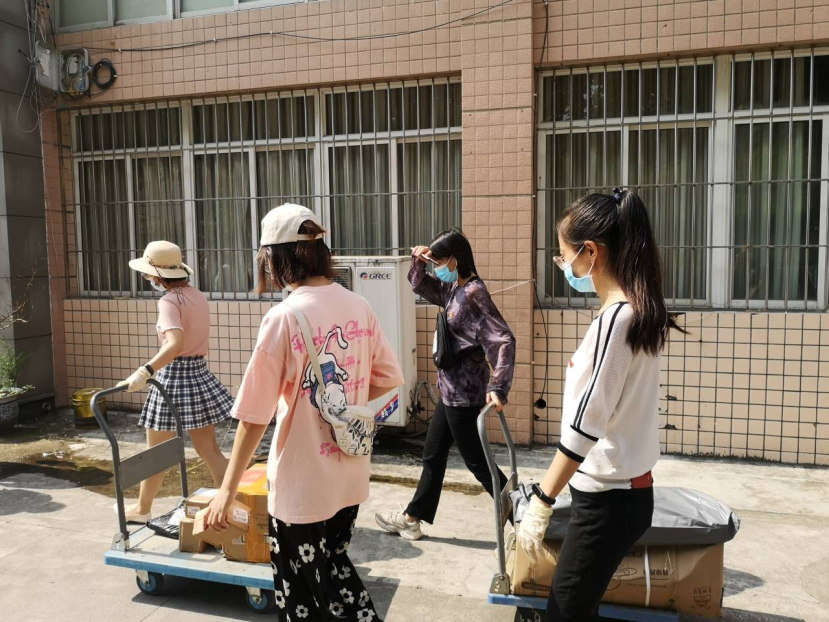 全体学生党支部的同志们完了协助新同学完成行李搬运、快递领取和宿舍布置等任务。为了确保每一位新同学都能尽快适应新环境,“红砖”党员服务队提前统筹规划,实行“党支部与班级一对一”的策略,各支部分别对接新生班级,保证每个班级都有党支部对接直接服务。由于新生初入校园暂不能自由活动,红砖党员服务队的研究生党员孙双飞等同志使用手推车将新生们的行李快递包裹从快递点搬运至竹园宿舍楼下,方便新生收取日常生活用品,同时减少人员流动,保障校园安全。党员服务队志愿者周玥同志说:“每个党员都是一面旗帜,发挥带头作用,以党员身份力所能及为同学们提供帮助,是我们的光荣”。