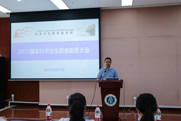 2022届本科毕业生就业动员大会暨考研动员大会在隆平楼204报告厅举行。院长吕典秋、党委副书记郑莉佳、博士生导师何光华、2022届辅导员白祯、毕业班班主任、2022届全体毕业生参加了本次大会,会议由辅导员白祯主持。