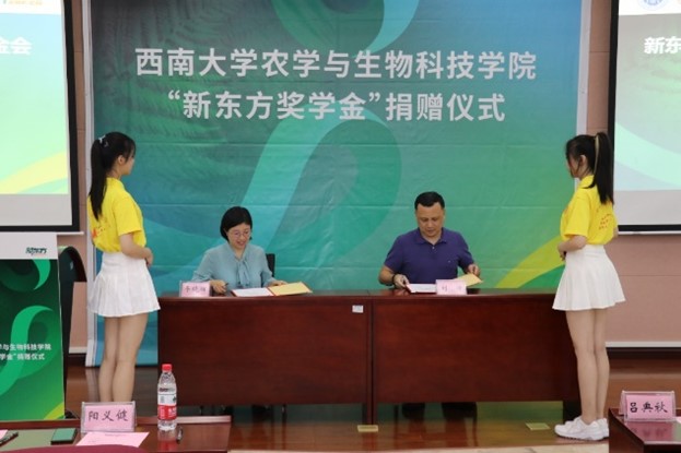 国际教育。吕典秋院长与韦晓丽女士签署了合作协议。刘涛副秘书长代表学校基金会与新东方前途出国重庆公司签署了捐赠协议,并颁发捐赠荣誉证书,吕典秋院长接受捐赠支票。