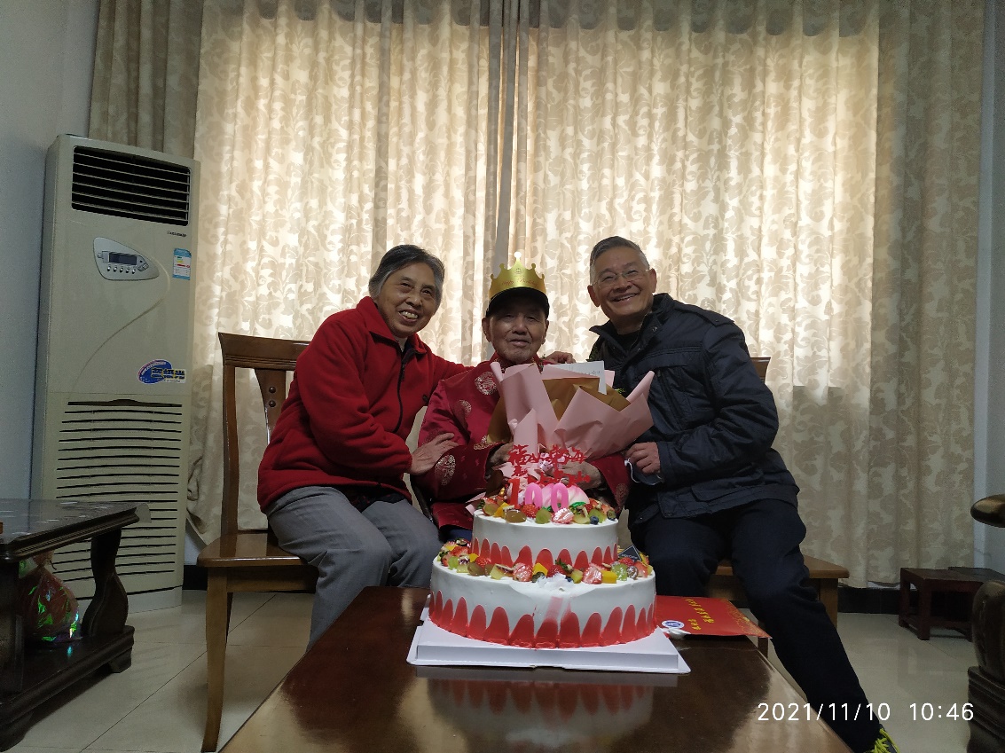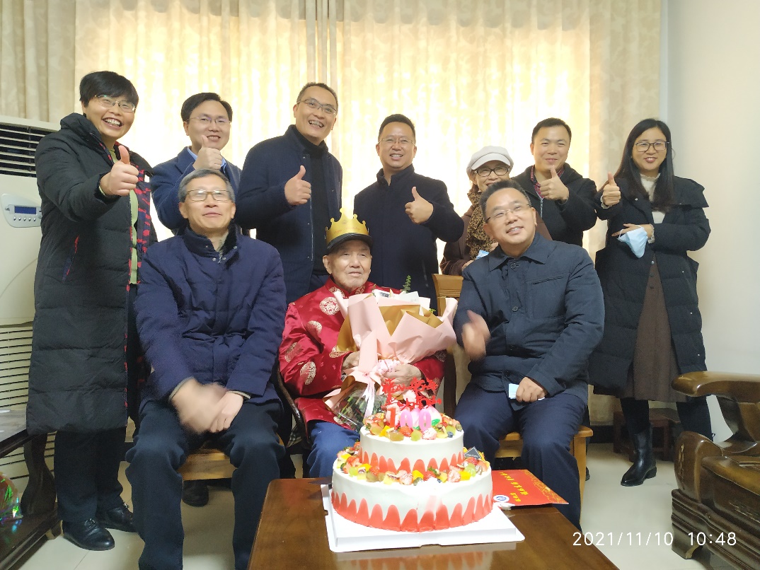 党、政、工负责人在副校长陈时见的带领下,与离退休工作处和党政办的相关领导一起,赴张老师家,为老先生送上诚挚祝福。