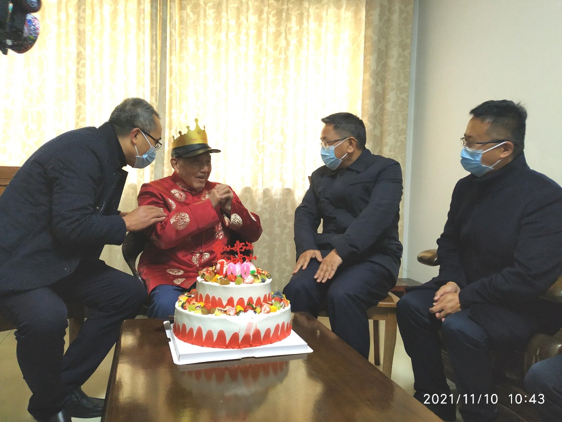 对张老师表示了亲切的慰问和祝福,并送上生日蛋糕。在百岁生日蜡烛融融的温暖里,在《生日快乐》歌欢快的旋律中,在场所有人向老寿星表达了最美好的祝愿。