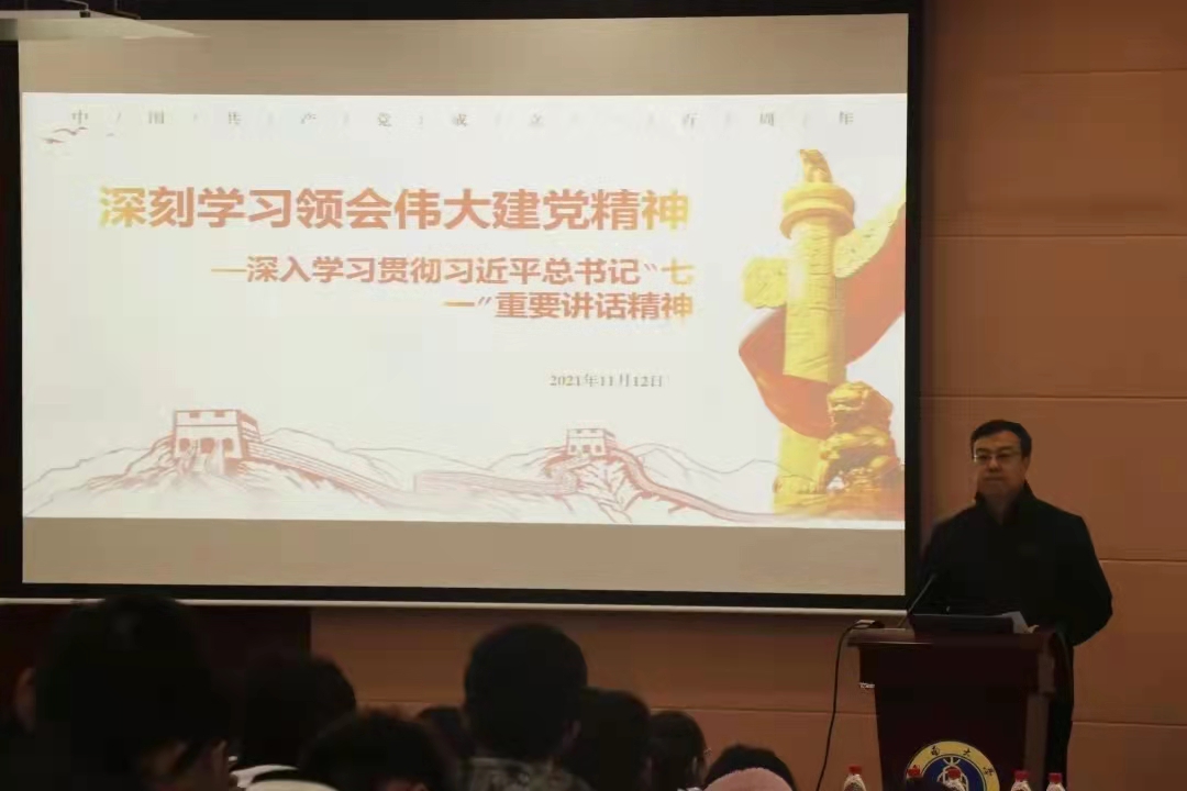 王进军副校长首先以近几天召开的党的十九届六中全会引入课程,向学生传达了十九届六中全会的重要会议精神。他指出,党的十九届六中全会总结了党的百年奋斗重大成就和历史经验,具有重要的学习和指导意义。