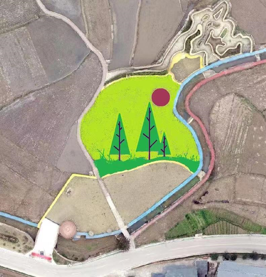 的专业背景,为村庄普通的水稻田设计出了“旭日东升”的五彩水稻种植图,并由隆平班的同学们亲手种植。设计者将东升村的地形地貌充分利用起来,将艺术、美学融入实地,培养学生认识美、爱好美和创造美的能力,以“美育”促进学生的全面发展。