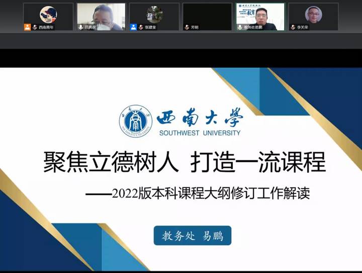 邀请教务处易鹏副处长作2022版本科课程大纲修订专题培训。会议由院长吕典秋教授主持,韩H漫