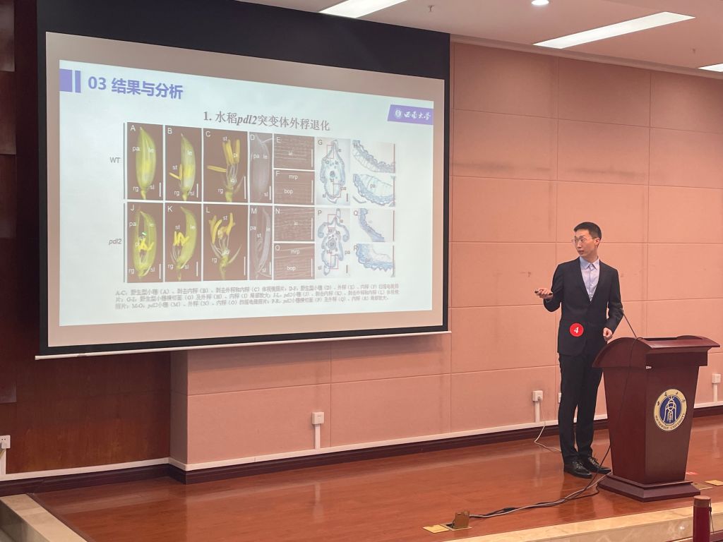 答辩环节由刘列钊教授主持,向同学们介绍答辩规则与流程后,各项目依次进行陈述和答辩,各选手根据自己团队的研究课题进行论文陈述,从研究背景与意义、研究结果和分析、总结和讨论等方面进行汇报。因决赛时间推迟,部分在校外实习的手通过线上方式进行展演和答辩,展演作品包括水稻基因的图位克隆和功能分析、侧生器官极性发育和稻穗、水稻花发育相关调控基因研究、川西稻田田埂及植物多样性对蜘蛛多样性的影响、芸薹属、苦荞、马铃薯、试管薯等植物相关基因研究、农民教育培训立法、乡村振兴水平调研生态认知和社会化服务对农户农药减量施用的影响等。答辩环节中,现场评委就论文作品的研究缘起和方向、研究方法运用、研究背景及意义、实验数据相关性、调查的样本量、研究结论以及原始资料的储备等方面,指出选手论文的不足和疏漏之处,并对于图表的制作和ppt讲述提出改进建议,对项目未来继续开展研究的方向提出指导性意见,现场思想碰撞、犀利问答,让在场所有同学都受益匪浅,收获颇多。