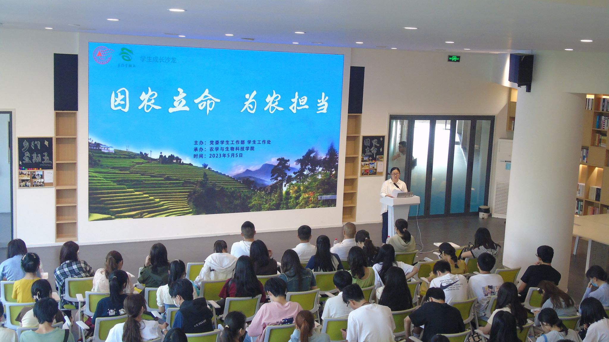 承办的第六期“乡约星期五”学生成长沙龙在青李空间多功能厅A11成功举办。本次沙龙主题为“因农立命,为农担当”,党委学生工作部副部长、学生工作处副处长罗军老师、学生思想政治教育科科长吴姝老师出席,农科专业学生代表参与学习讨论,沙龙由韩H漫