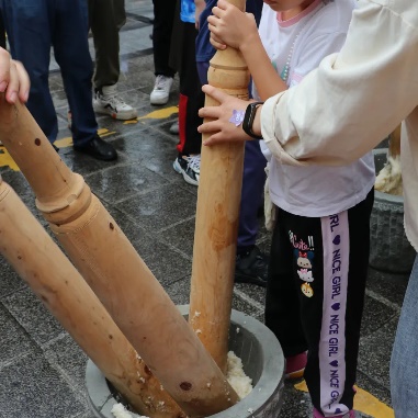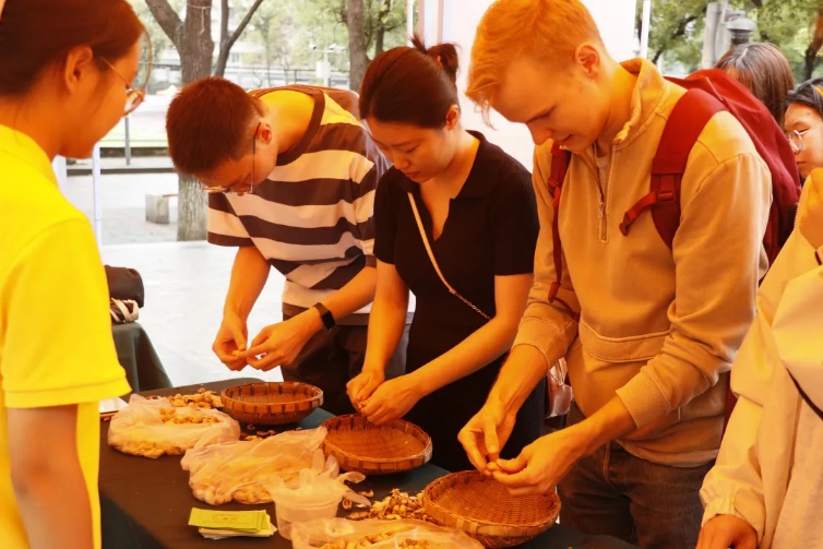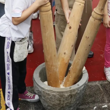 吕典秋院长致辞,号召大家以节为媒,释放情感,传承文化,寻找归属,助力乡村振兴!接着,全体师生们一起体验了传统打糍粑活动,蒸好的糯米迅速放入石槽,被硕大的木杵一下一下地舂至绵软柔韧,新鲜软润的面团就成形了。“原来糍粑是这样制作出来的,以前从未亲手做过。”参加活动的同学们惊喜地说道。