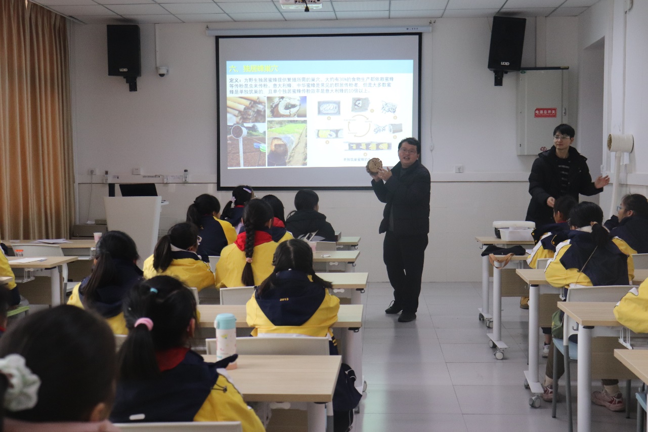 段美春副教授带领小朋友们参观了实验室,然后认真讲解了什么是生物多样性、种植野花带和独居蜂巢穴的技术,带领小朋友们体验了农田生物标本的挑选和制作等,并赠送了野花种子,用丰富而生动的方式将保护生物多样性重要性这一概念传递给小朋友,鼓励他们积极参与保护生物多样性,起到了较好的科普宣传效果。