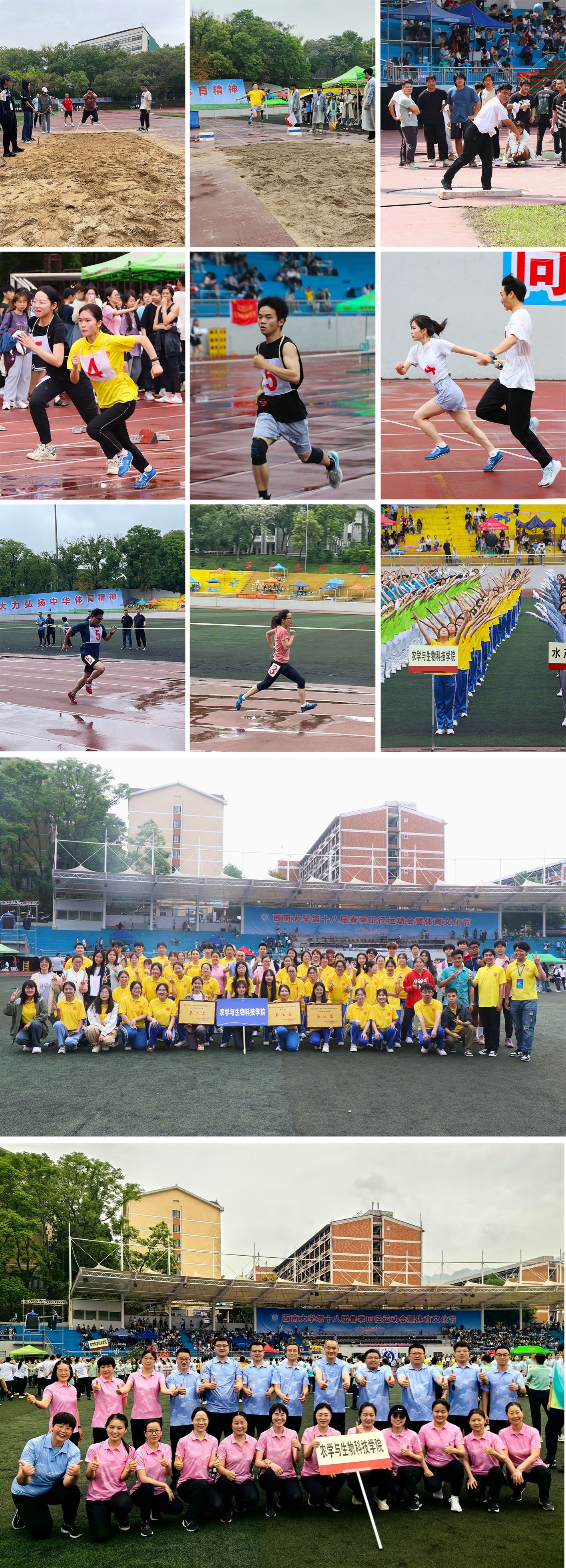 增光添彩;看台上,观赛同学在场外助威呐喊,加油声响彻整个运动场;赛场外,工作人员们服务奉献,为同学们留下深刻美好的记忆。这段交杂着雨水与汗水、笑容与激情的时光,定将成为同学们青春中不可抹去的美好回忆。