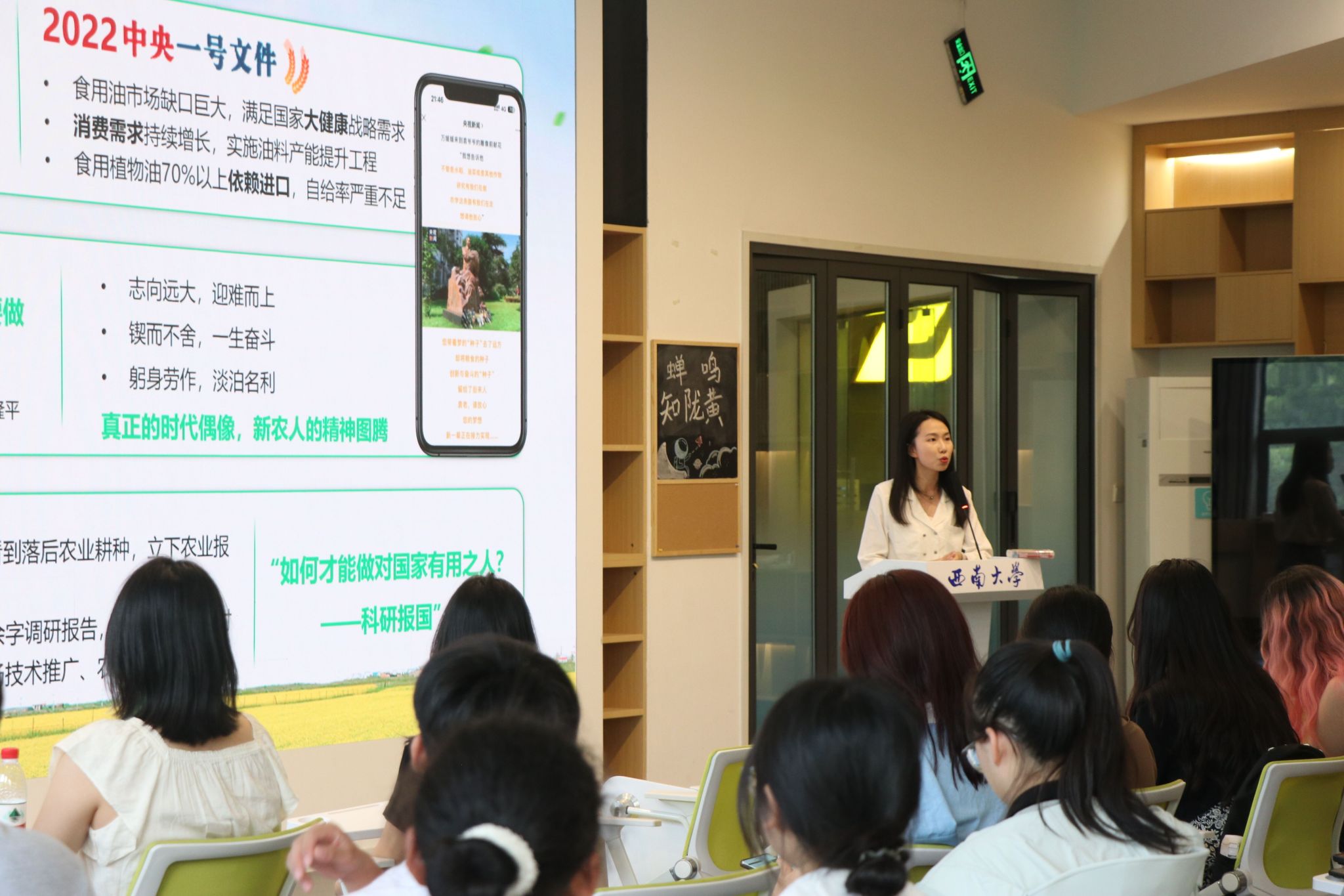 万媛媛同学以“心在最高处,根在最深处”为主题,分享了本硕博期间的学习方法和推广油菜优良品种时的趣事和难点。她坚信并实践着:学农也可以走出不一样的精彩人生。万媛媛衷心希望同学们能充实生活、综合发展,找到学习和生活的平衡点。君子不器,饮水思源,做好一粒种子,将论文写在祖国大地上。