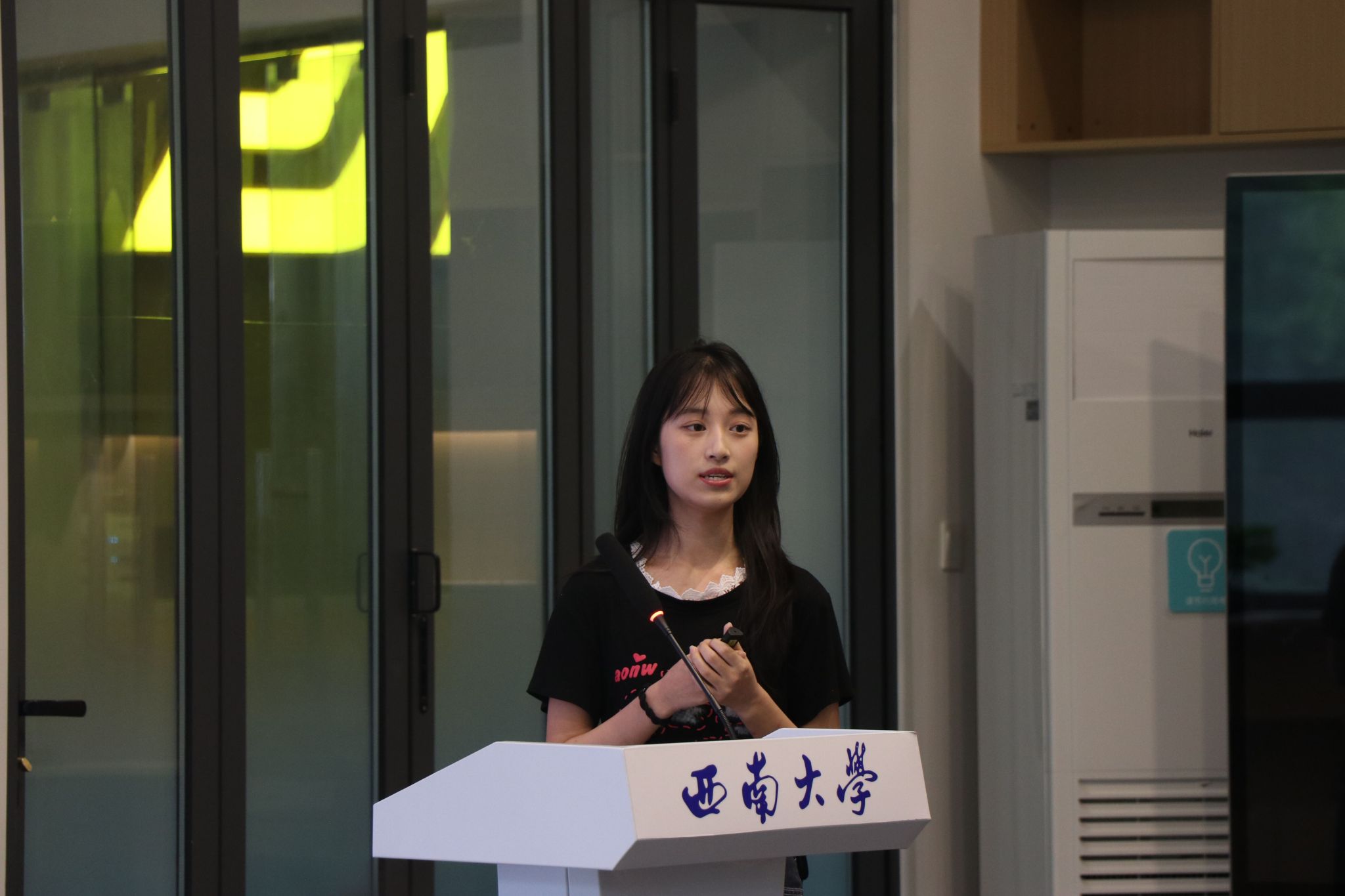 孙羽同学以“做多彩光合人,圆禾下乘凉梦”为主题,介绍了他们植物群体光合装备创新团队在研发过程中经历的困难挑战和心路历程。秉承着“躬耕田野,脚踏实地”的袁隆平精神,团队面对挑战从不畏惧,逐个击破,历时4年终于成功研发出植物群体光合全天候智能检测系统,荣获第十八届“挑战杯”全国一等奖。她向同学们展现了一个团队的力量,成员间的分工协作、路演材料的精心打磨,赛前赛中赛后的准备工作和心路历程等细节深深触动了在场的每一位同学。她总结了四个关键词:创新、团队、细节、自信,让大家受益匪浅。