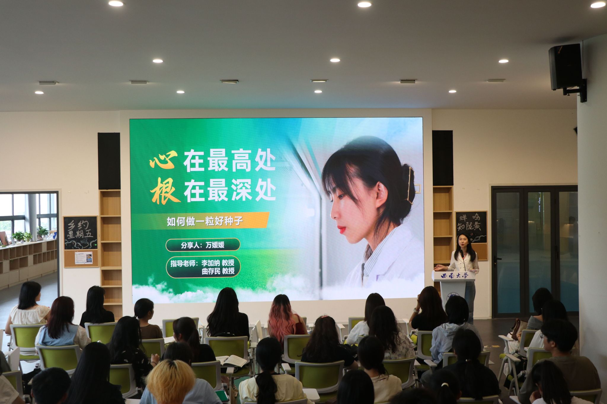 “乡约星期五”学生成长沙龙是党委学生工作部 学生工作处“助力新农科人才培养行动”的重要内容之一,旨在通过朋辈分享,增强学习动力,强化专业认同,厚植“三农”情怀。学校在每周五持续开展“乡约星期五”学生成长沙龙,由各涉农韩H漫