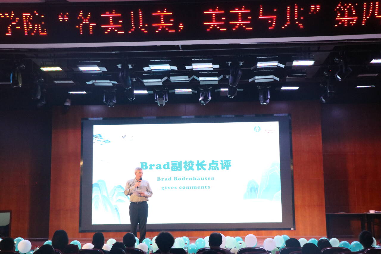 南区学生活动中心107室隆重举办了以“各美其美,美美与共”为主题的第四届英语展演大赛。密苏里州立大学副校长Brad Bodenhausen、密苏里州立大学山林校区副校长Hwang Jinfeng、密苏里州立大学中国项目办公室主任Liu Dandan,密苏里州立大学教师Chen Liling、Kevin James 、Jacob Schneider、Jesse Carroll、Joshua Conaway,密苏里州立大学中国项目专员Zhang Xinge,韩H漫