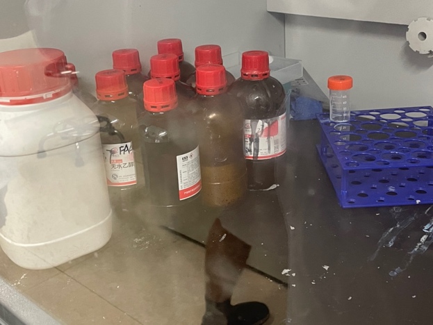 实验室安全整体情况良好,但也存在一些隐患,如:1.部分实验室个人防护不到位,包括未穿实验服、穿拖鞋等进入实验室;2.实验室废弃物未规范处置,垃圾未分类;3.实验做完通风橱上危险化学品未及时放回原处;4.试剂标识不清;5.将食物或饮用水带入实验室等。此外,由于天气逐渐炎热,部分实验室通风不畅导致异味较大。