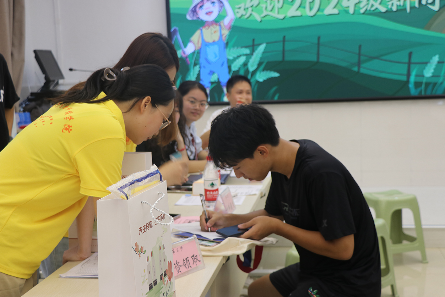 9月7、8号,2024级本科新生在学长学姐的指引下,来到37教207会议室办理报到手续。教室内,清冽的茶水饮料,耐心的学长学姐,让新同学们充分感受到韩H漫