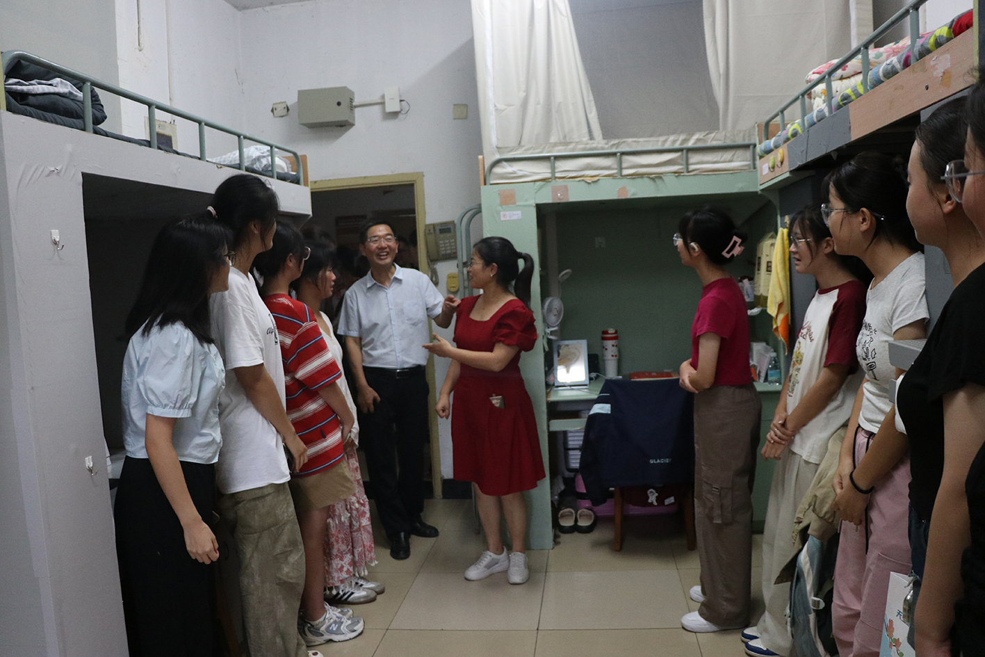 全体领导、辅导员及各班班主任前往新生宿舍,走访慰问2024级新生。老师们和同学们亲切交谈,询问入校后适应情况,帮助解决遇到的困难,解答同学们提出的疑问,并鼓励同学们要勇于挑战、树立理想、规划目标,健康、安全、充实地度过大学生活,叮嘱同学之间要相互帮助,积极调整自己的心态,尽快适应大学生活,以更加积极饱满的状态投入到新学期的学习生活中。