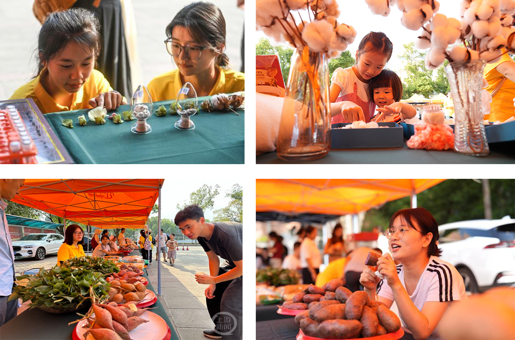在农业科学研究的丰收成果。“五谷丰登” 展区,有蒸熟的甜南瓜、红薯、爆米花、毛豆、米饭等食品供师生免费品尝;“妙语解颐” 科普区内,各课题组利用大屏幕滚动播放 5 - 8 分钟的微课堂,轮流宣讲贴近生活的农产品知识和先进的农业科技设施。整个活动场地欢声笑语、加油声和喝彩声交织回荡,一片喜气洋洋的景象。
