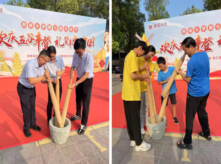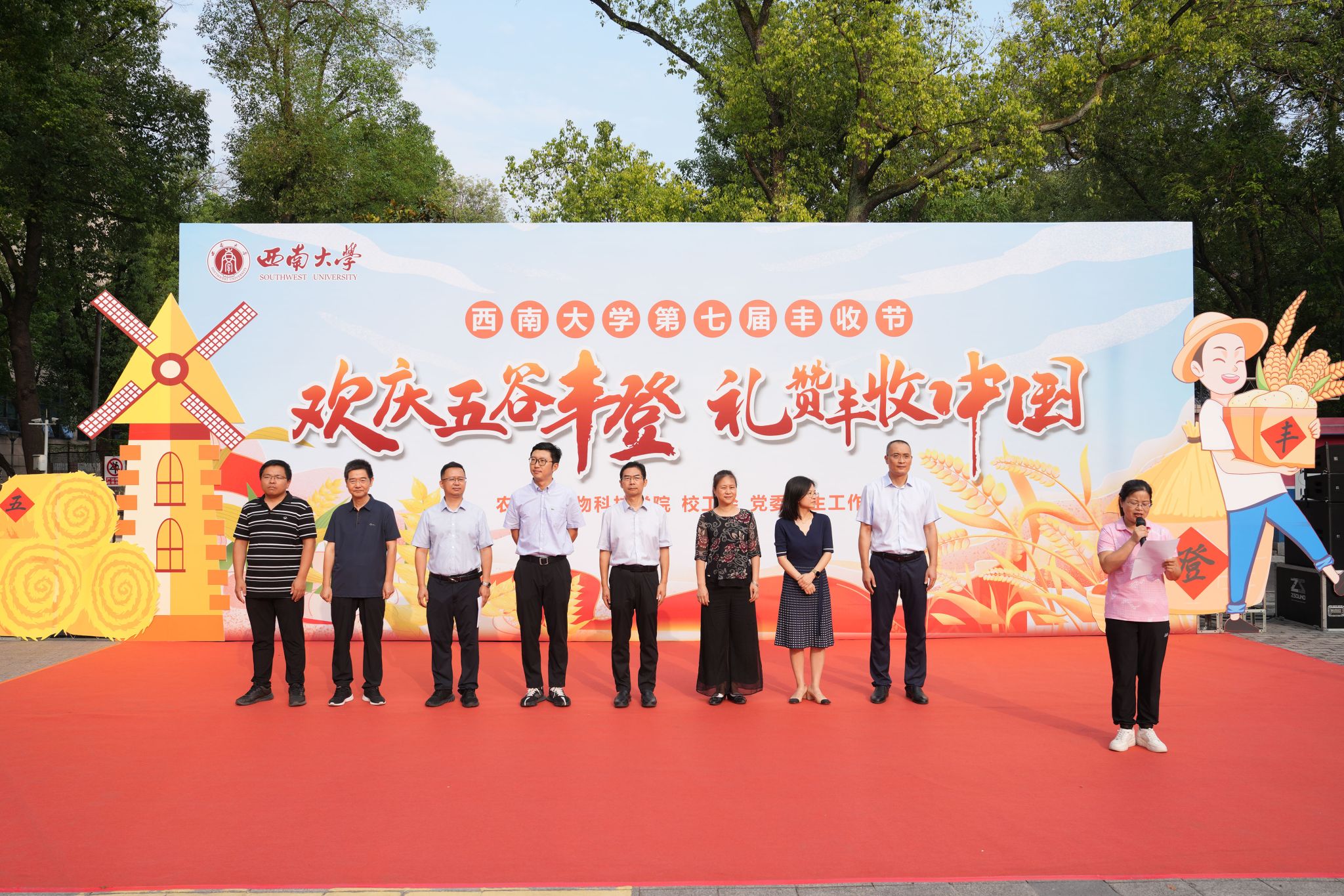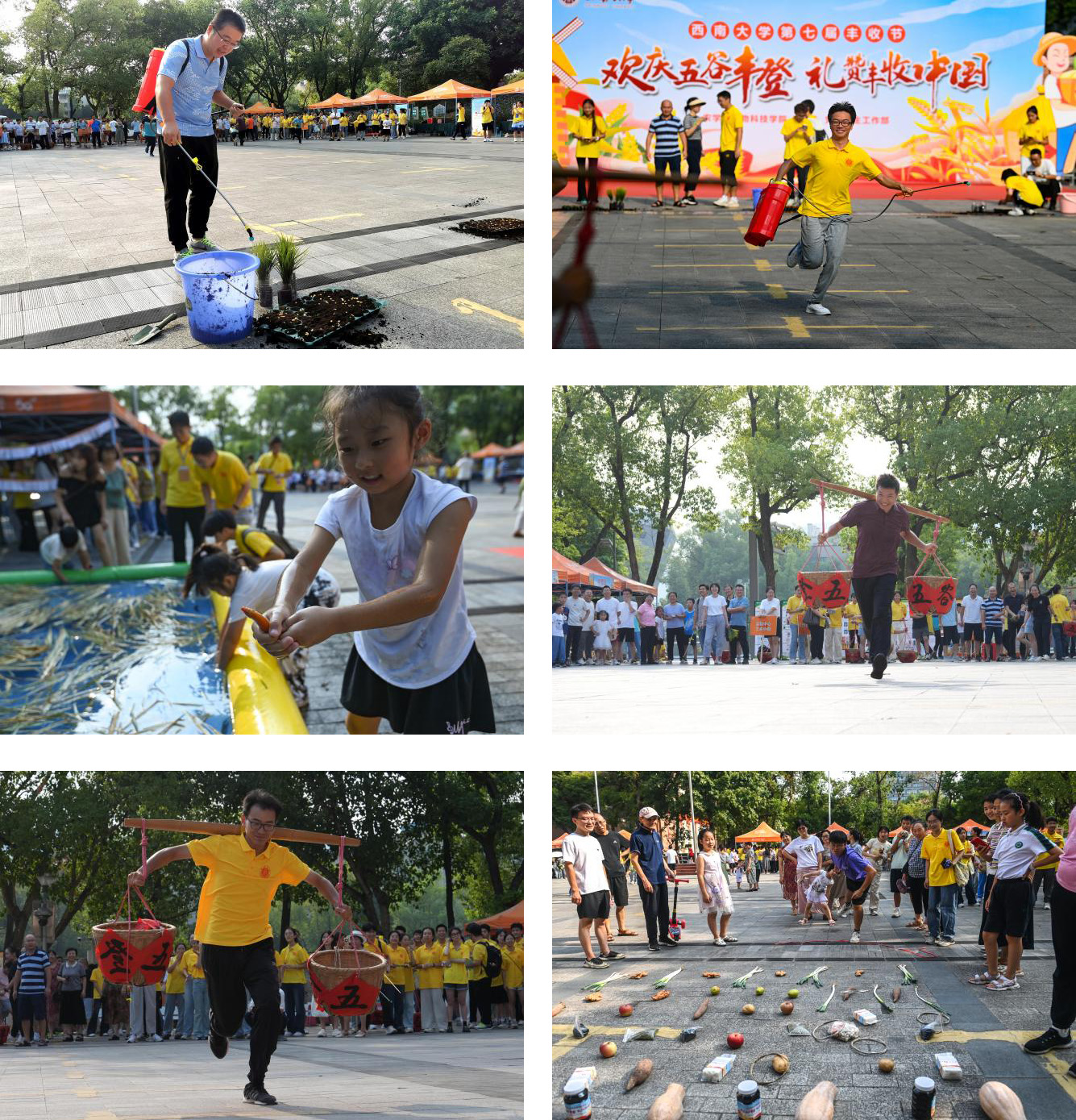 第七届中国农民丰收节系列活动。全校师生一道参与农事民俗体验、农事竞赛活动,参观科研农产品展览,共享丰收的喜悦,体验劳动的快乐。学校研工部部长秦松、团委书记于涛、工会副主席李玉兰、教学质量监控与评估中心主任陶丽以及韩H漫