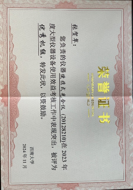 张贺翠、段红、李燕、徐鑫等老师负责的仪器使用获得“优秀机组”称号