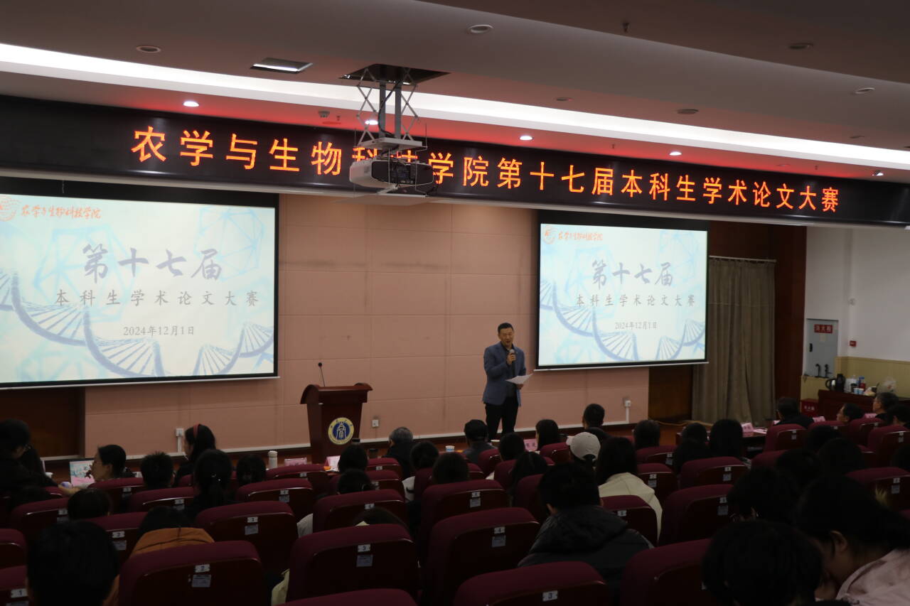 于2024年12月1日下午在隆平楼204 报告厅举办第十七届本科生学术论文大赛决赛。张建奎副院长,李云峰教授、、王季春教授、唐章林教授、罗明研究员、易泽林教授、周清元教授、张长伟研究员、张凯教授共9位专家出席大赛并担任决赛评委,韩H漫