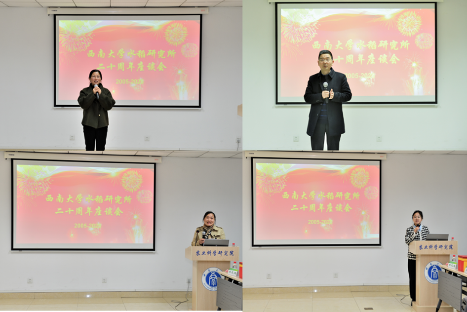 党委副书记郑莉佳、副院长张建奎,水稻所全体师生以及20余位水稻所毕业的校友代表齐聚一堂,共同回顾水稻所20年的发展历程,展望未来。