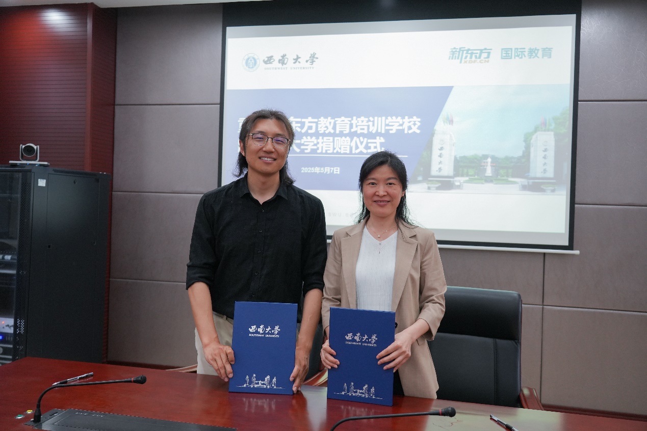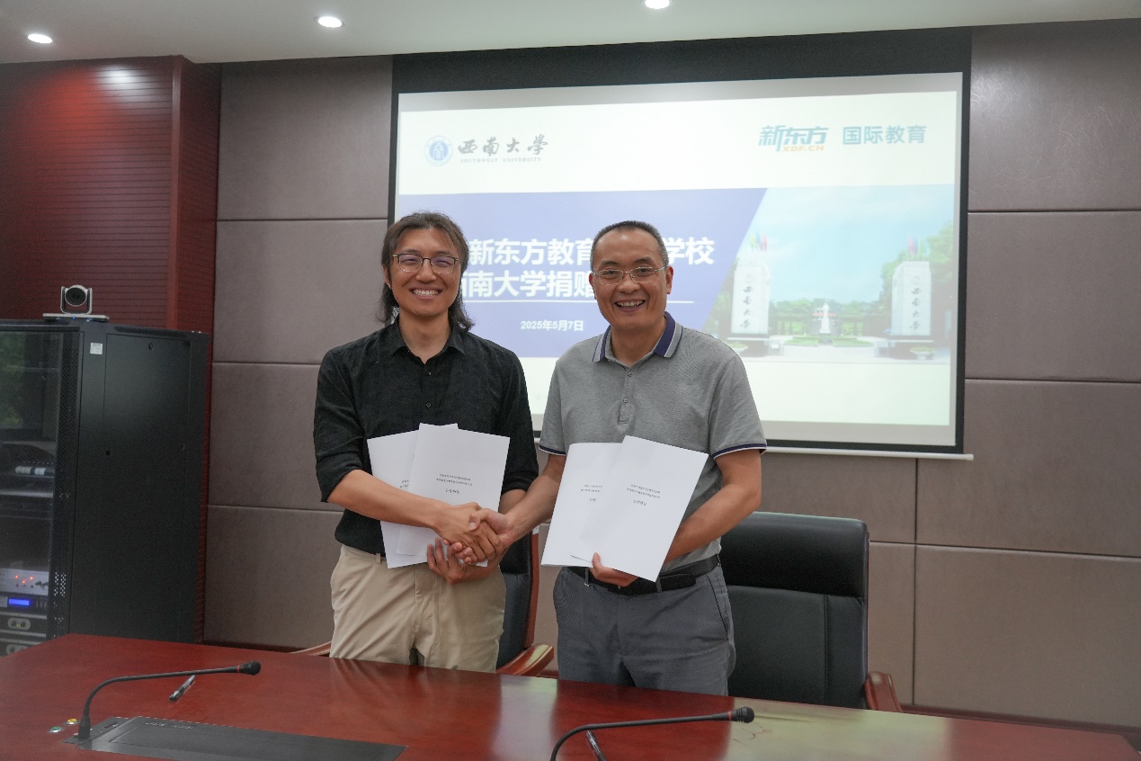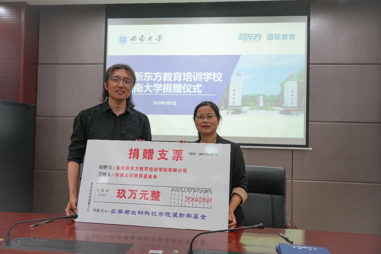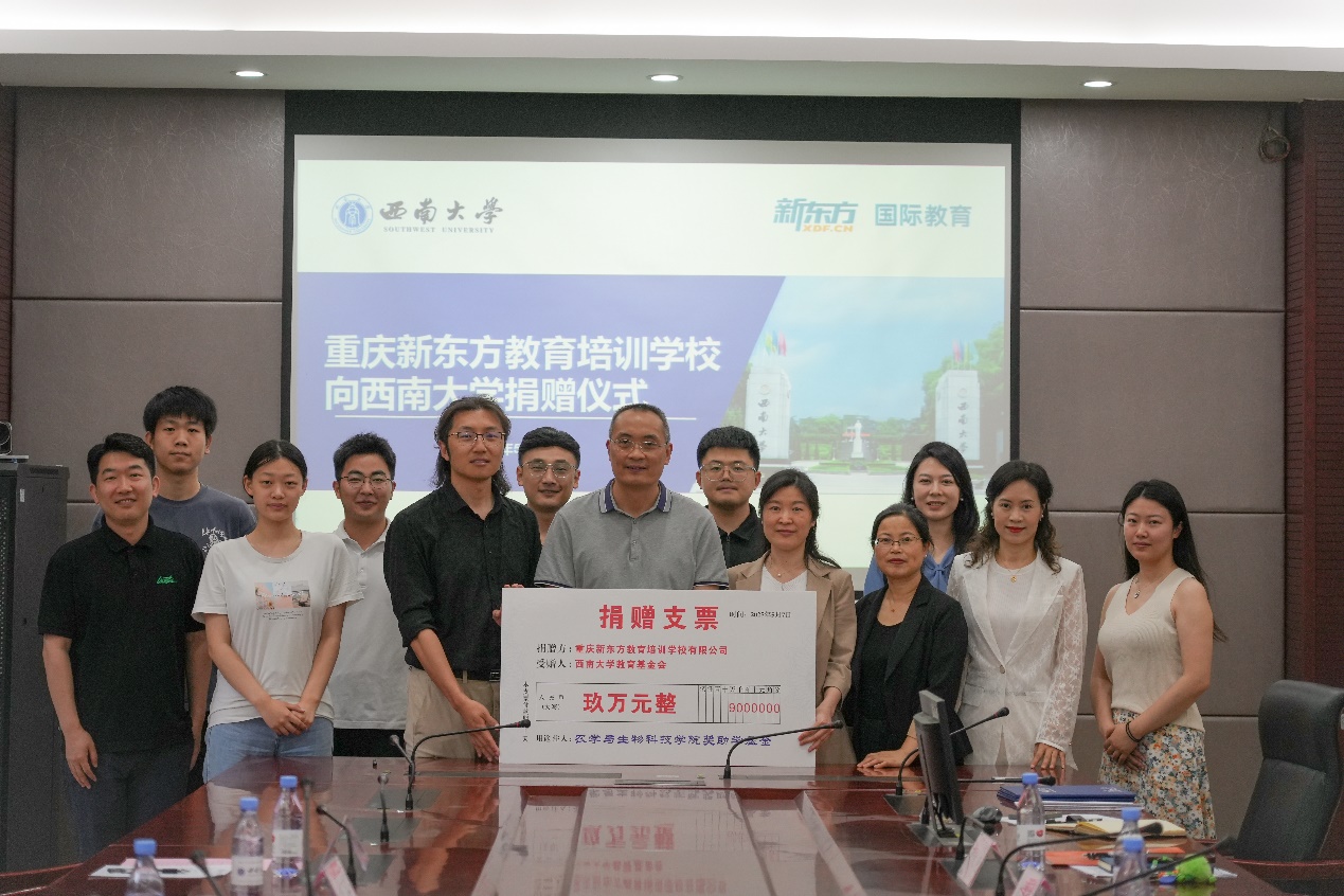 捐赠九万元设立“国际教育奖助学金”。5月7日上午,捐赠仪式在隆平楼108会议室举行。重庆新东方教育培训学校有限公司总经理杨笑天一行,学校对外联络办公室副主任陈建英,韩H漫