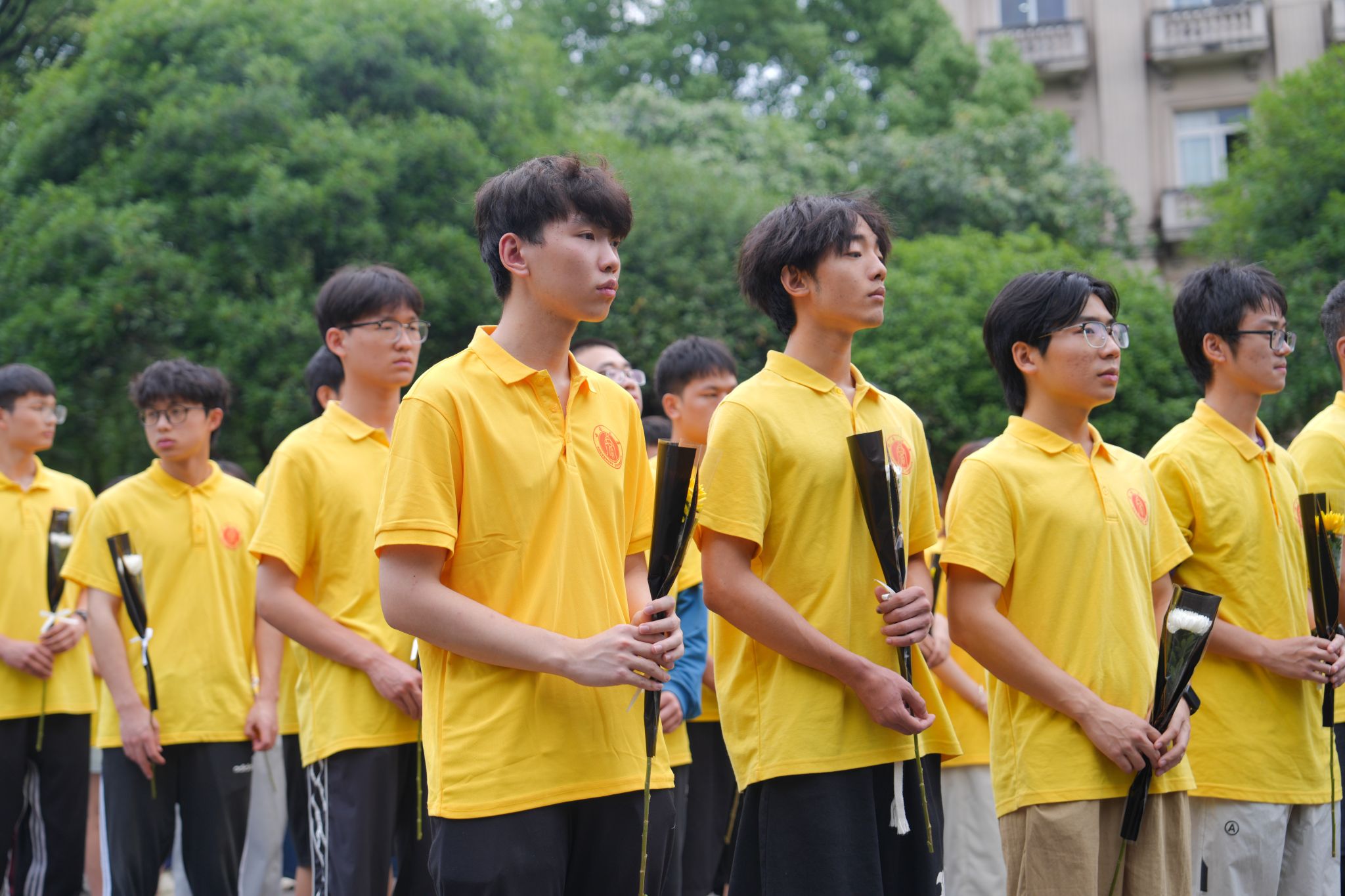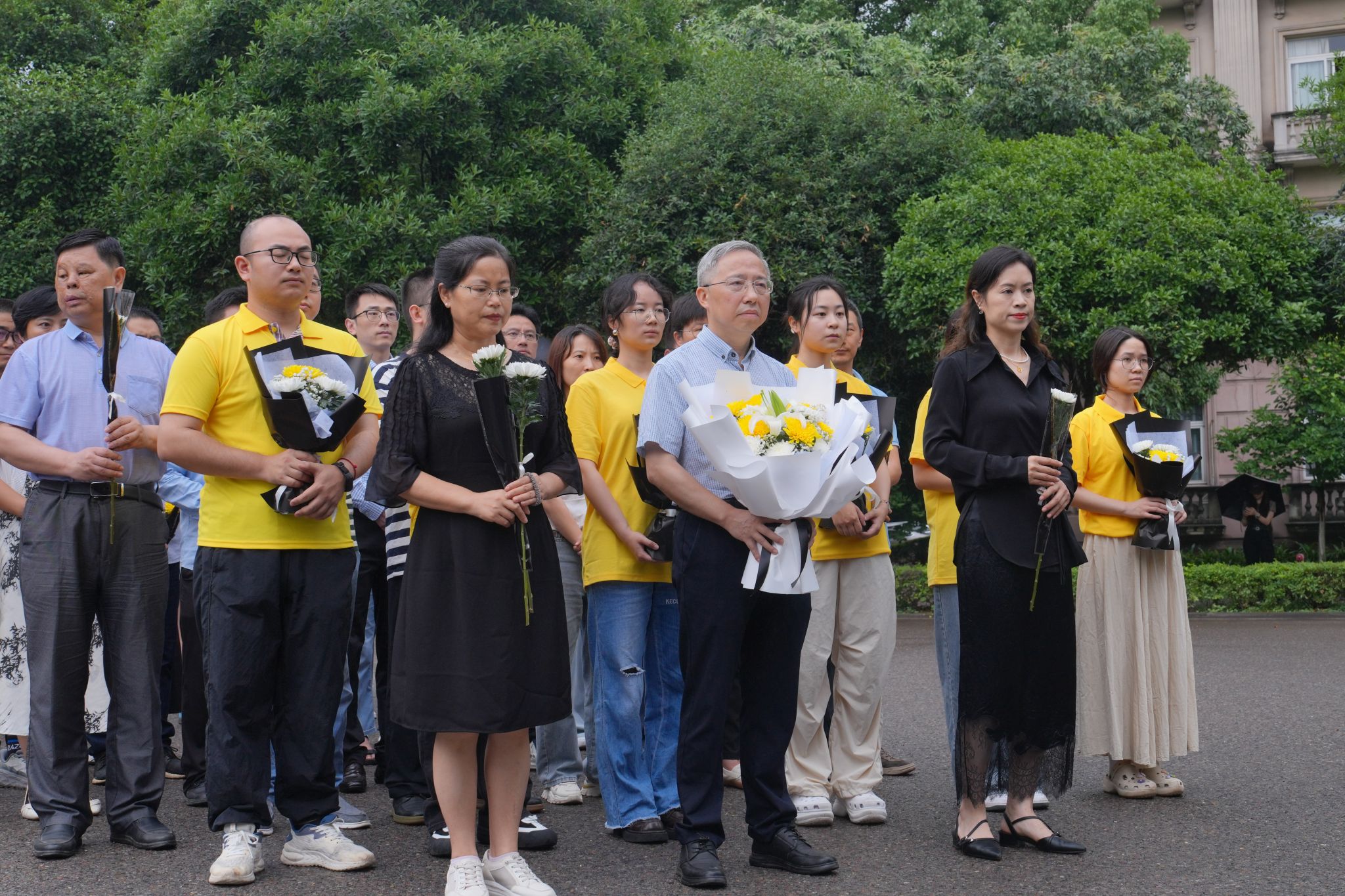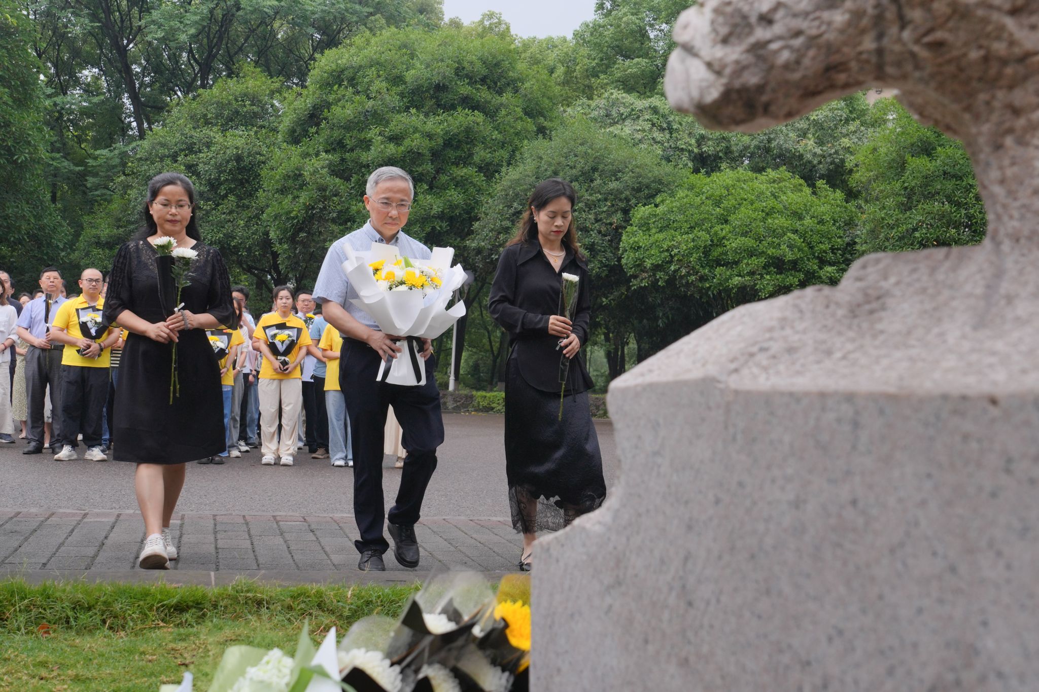 32教学楼前的袁隆平雕像处敬献鲜花、深切缅怀。韩H漫