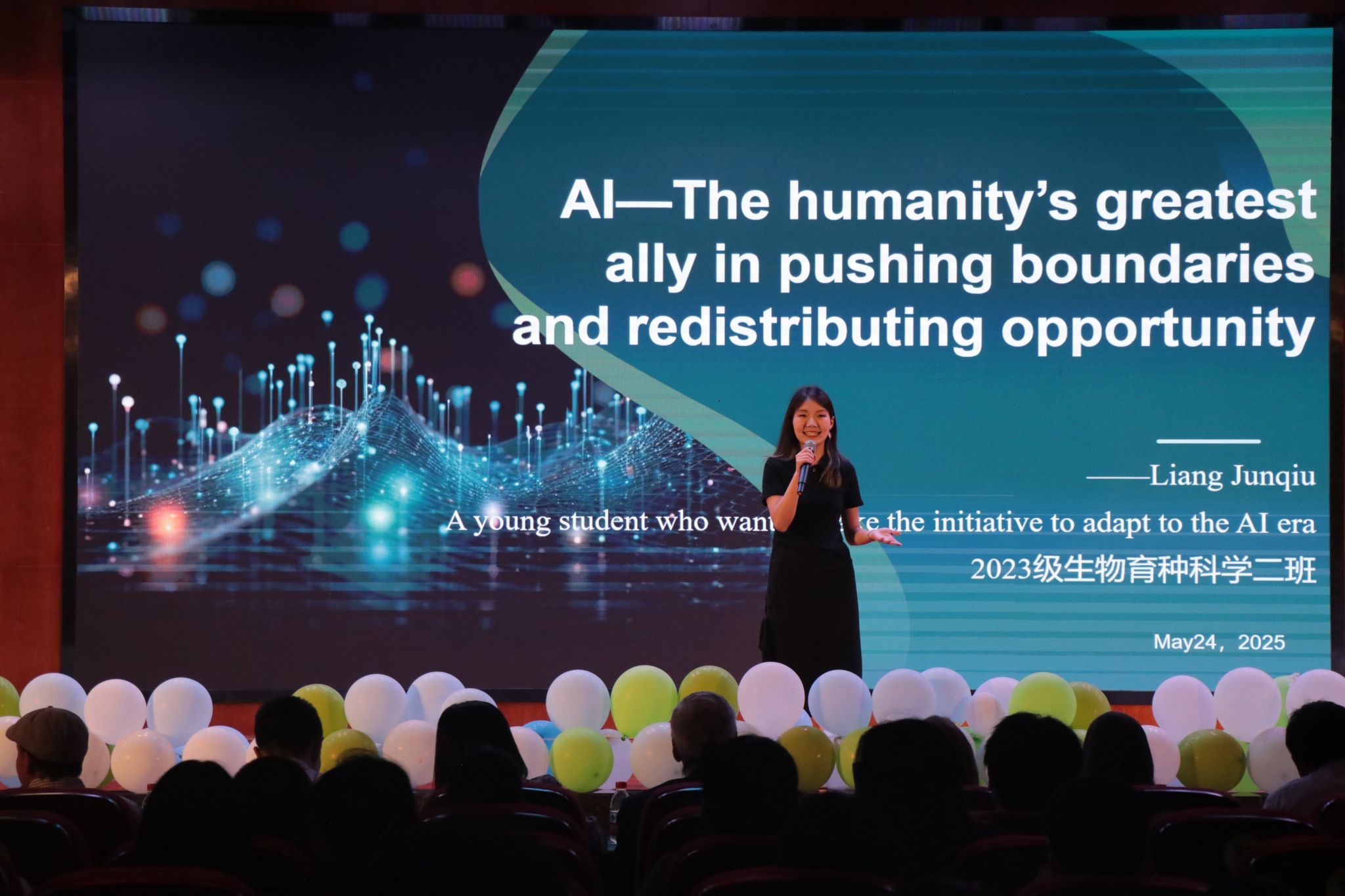 在个人演讲环节,六位选手围绕“AI: A Threat to Jobs or a Creator of New Opportunities?”(AI是就业威胁还是新机遇的创造者?)主题展开激烈角逐。选手们需在5-8分钟内,以清晰的逻辑、流畅的表达和稳健的台风,阐述对人工智能与就业关系的辩证思考。他们凭借扎实的语言功底和卓越的表现力,赢得现场评委与观众的高度赞誉,充分彰显了在语言学习与跨文化交流方面的深厚积淀。