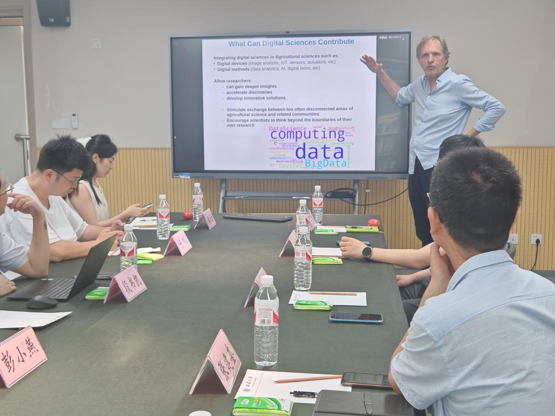 首先,Neveu教授以“植物科学数据前沿问题”为主题作了学术报告,系统介绍了国际前沿研究进展及团队最新成果。作为农业大数据与知识管理领域的国际知名专家,他的报告内容翔实、视角前瞻,为在场师生提供了宝贵的学术启示。
