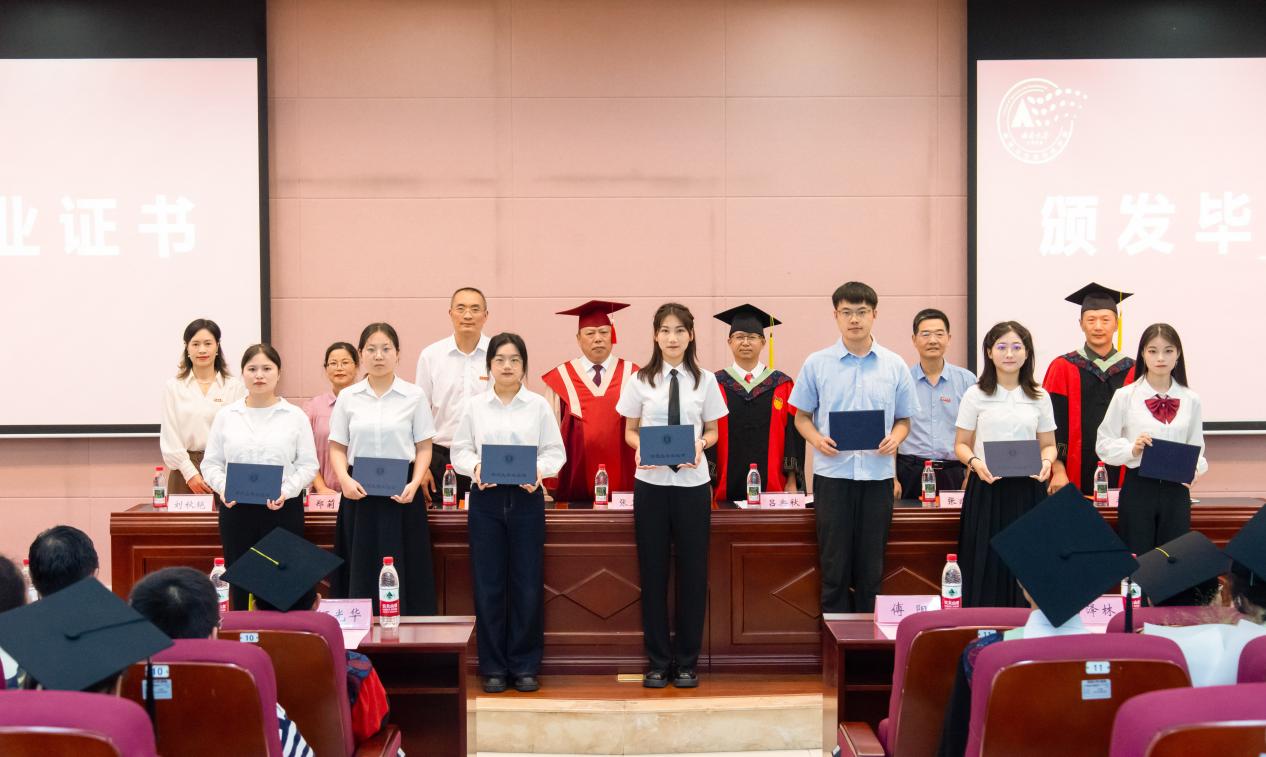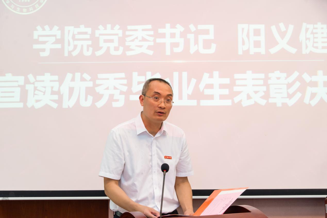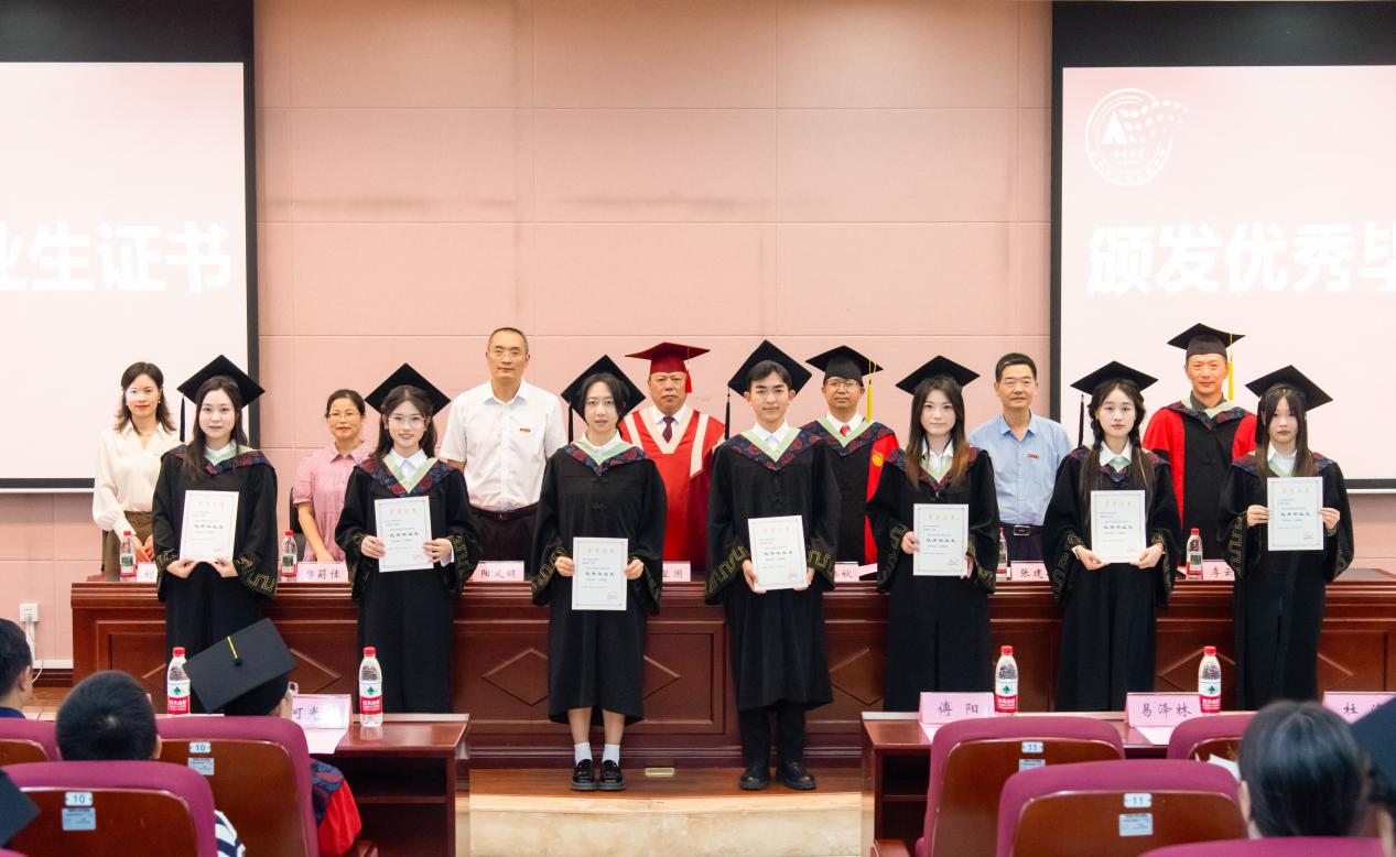 党委书记阳义健首先宣读了2025届优秀毕业生表彰决定,对在学业和科研方面表现优异的33名本科生和26名研究生进行了表彰,并为他们颁发荣誉证书。随后,韩H漫