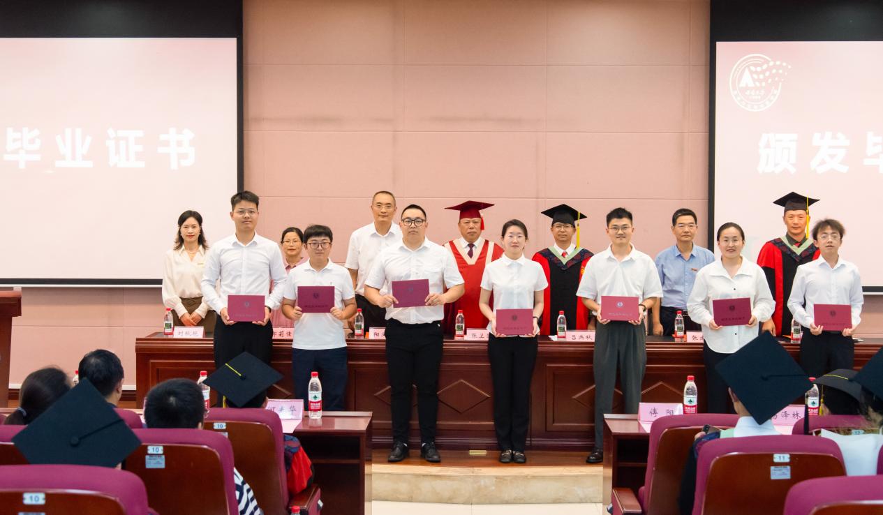学术委员会委员为毕业生们一一拨穗授位,毕业生们身着学位服,在师长的见证下完成从“青穗”到“硕实”的蜕变。