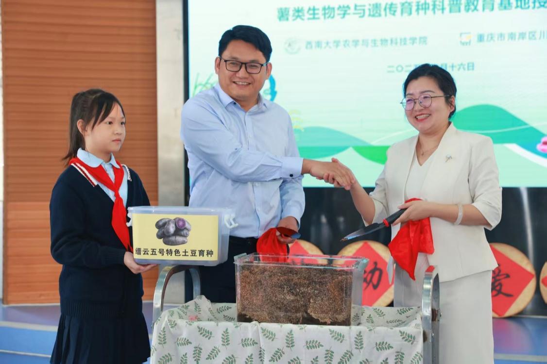 与川益小学联合举办的以“耕读传家,薪火相传”主题的秋耕实践暨薯类生物学与遗传育种科普教育基地授牌仪式在南岸区川益小学举行。韩H漫