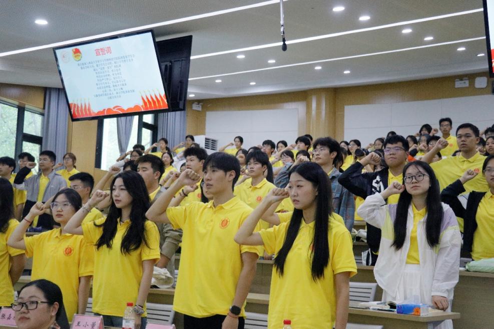 最后,在工作人员尹俊林的带领下,全体成员庄严宣誓。“奋进青春,恪守本分,牢记宗旨,服务同学”的誓言响彻会场,展现了全体成员的坚定信念和责任担当。