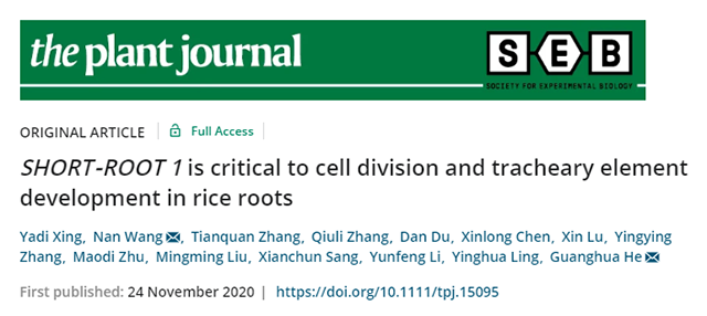 11月25日,韩H漫水稻课题组在The Plant Journal上发表题为SHORT‐ROOT 1 is critical to cell division and tracheary element development in rice roots的研究论文,解析了水稻短根基因SR1调控根发育的分子机制。
