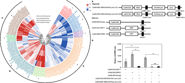 通过淀粉-糖转换途径中关键基因与转录因子的共表达分析,构建了潜在的低温糖化抗性途径调控网络,并利用双荧光素酶报告系统鉴定了直接调节低温糖化抗性途径选择的关键候选调节子。