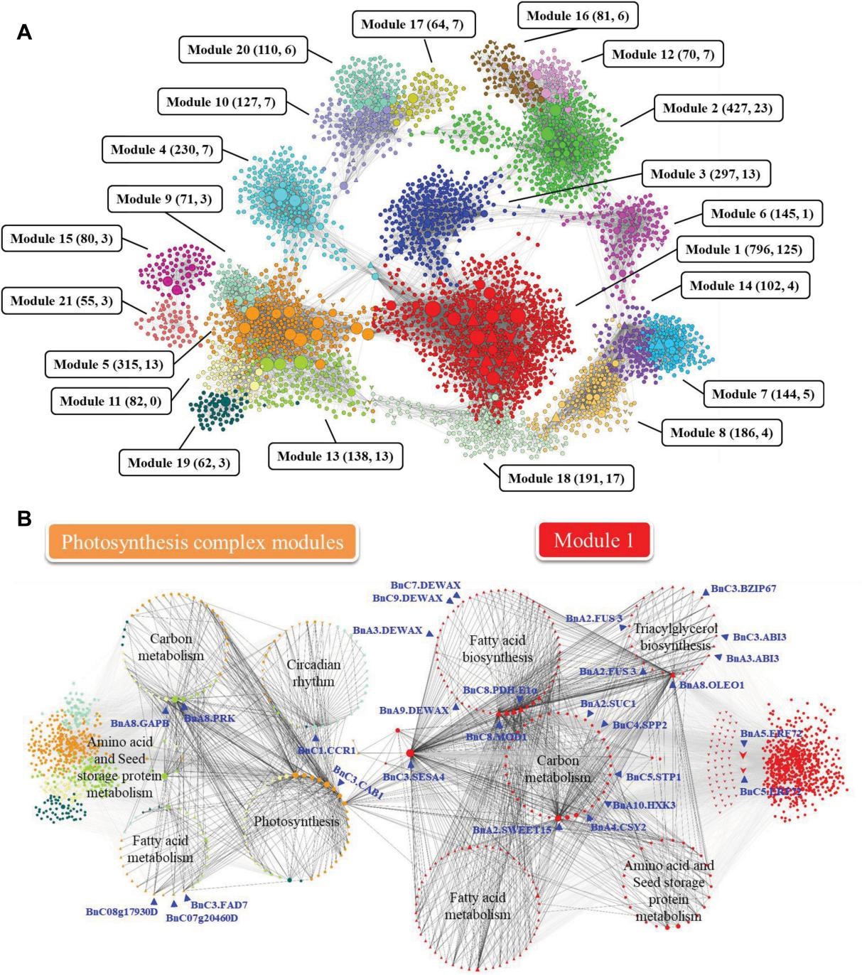 很多农艺性状是由多基因控制的数量性状,但只有少数控制性状的基因被挖掘出,大量的基因还停留在遗传定位阶段。基于控制相同性状的基因具有相似的表达特征,并且在不同物种中具有一定的保守性,油菜资源团队提出了一种快速筛选QTL区间内候选基因新方法。他们利用一套油菜基因表达谱数据,将收集来自不同物种的已知基因对应到油菜同源基因,作为“诱饵”,与QTL区间内的基因进行共表达分析,“钓取”QTL区间内的候选基因,并利用模式植物进行功能验证。油菜资源团队利用该方法挖掘出了一批油菜含油量和粒重候选基因,相关结果分别发表在Journal of Experimental Botany及The Crop Journal上。